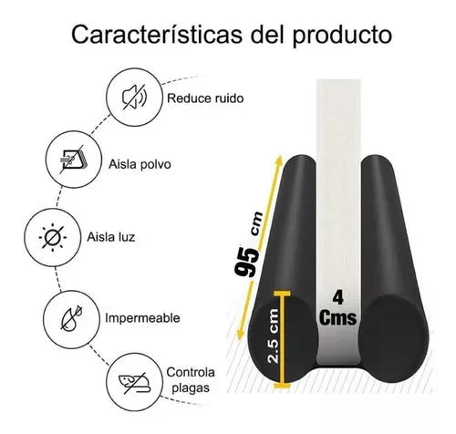 Es una solución práctica, duradera y súper efectiva para cerrar ese espacio bajo la puerta por donde se cuela el aire, el ruido, los insectos y la suciedad. Fabricado con materiales resistentes, se adapta a cualquier tipo de puerta y se instala en minutos, sin herramientas.